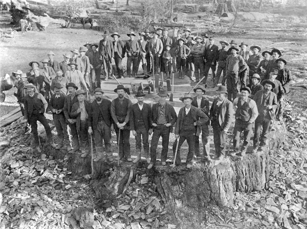 Figure 16. The stump of the Mark Twain giant sequoia. The tree was felled in 1891. Large sections of the trunk were sent to museums, and the rest was cut up for grape stakes and fence posts.